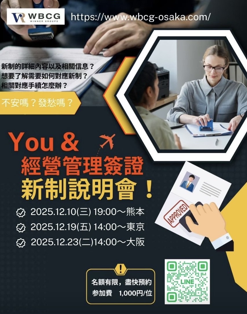 日本新制度公布了!您對之後簽證的更新,或是緩衝期內需要做的修正,感到焦慮不安嗎? 讓我們現場為您解答,座位有限請盡快報名喔!